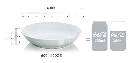 - AMAZING FUNCTIONAL: perfect size all-around bowl for pastas, salads, soups. 20-ounce capacity, also suitable for side and dessert dishes, cereal, rice, ice cream, fruit. Tip: plan out the measurements on a ruler to give you an idea of its actual size before purchasing!