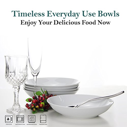 YHY 20-Ounce Porcelain Salad/Pasta Bowls, Soup Bowl Set, Shallow & White, Set of 6