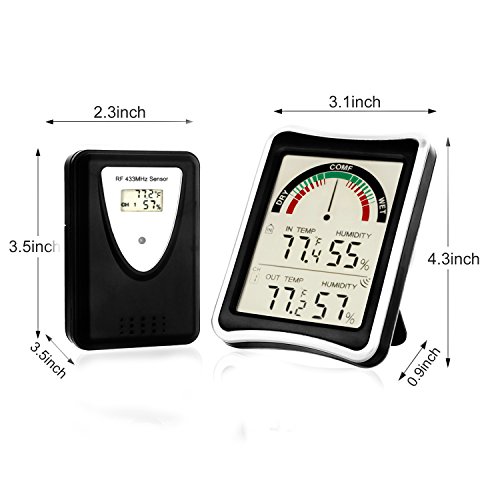 LCD dimensions(wireless transmitter-outdoor sensor)(LxW): 3.54 x 2.36inch(90*60*28mm),