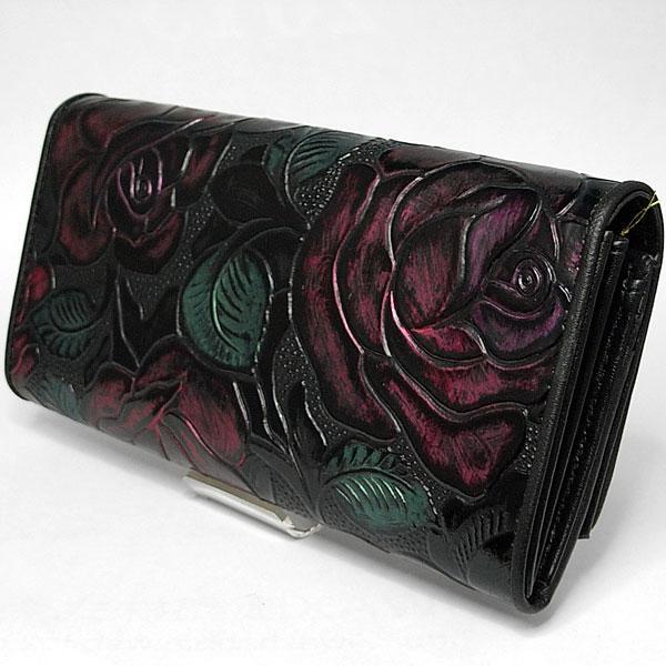 【全国宅配便送料無料】 【ラッピング無料】 花柄型押し長財布の登場です。 【注】バラの出方は商品ごとに異なります。写真は一例です。 イメージ違いの返品はご遠慮願います。 牛床革を使用しながら、部分的にエナメル調にもなっている大人デザインの財布です。 落ち着いたブラック基調に型押しの薔薇が上品です。 箱入りなのでプレゼントにもどうぞ☆ サイズ:タテ9.5cm×ヨコ18.5cm×マチ2.5cm 素材:牛床革、(内側)合皮 仕様:カード入れ×18、オープンポケット×3、ファスナー式小銭入れ(3部屋) 付属品:箱 ( バラ 薔薇 ばら 人気 激安 最安値 限定 特価 ブランド ランキング 安い)