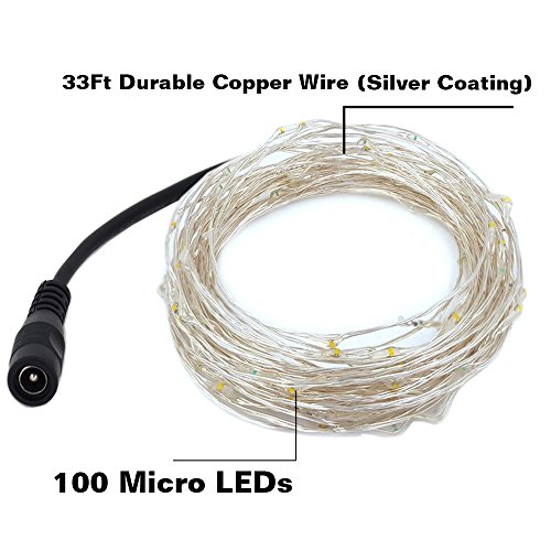 - Flexible & Durable: 100 micro super bright LED lights on 33Ft long ultra-thin copper wire with 3 inches distance between LED bulbs, you can use it to cover virtually any area or structure and increase the visual appeal in your setting