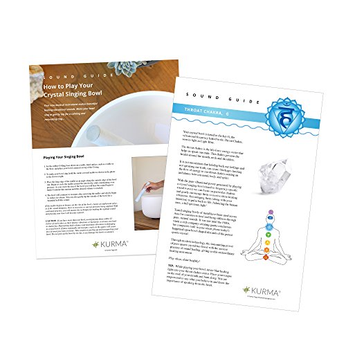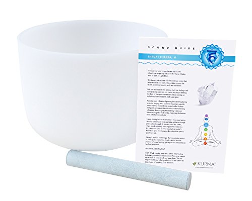 432 hz THROAT CHAKRA CRYSTAL SINGING BOWL - Frosted quartz crystal 10” singing bowl. Includes chakra card and playing guide, high quality suede mallet, and durable rubber o-ring base