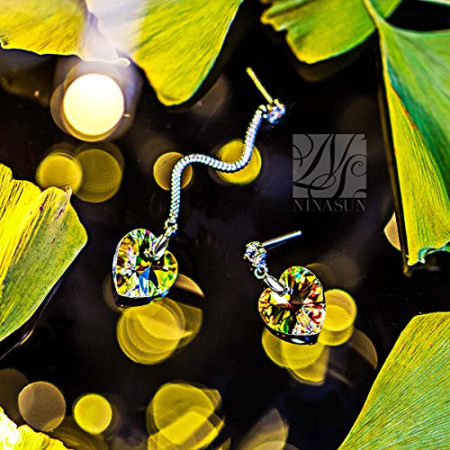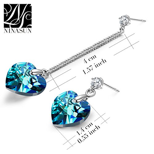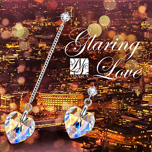 -. Title : NINASUN "Glaring Love" 925 Sterling Silver Love Heart Drop Dangle Earrings, Fashionable Asymmetry Design