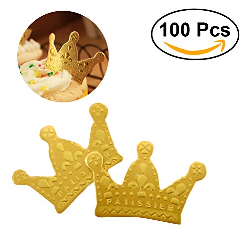 ROSENICE Cupcake Topper Glitter Crown Card For Birthday Wedding Party Picks Gold 100pcs