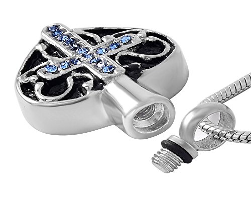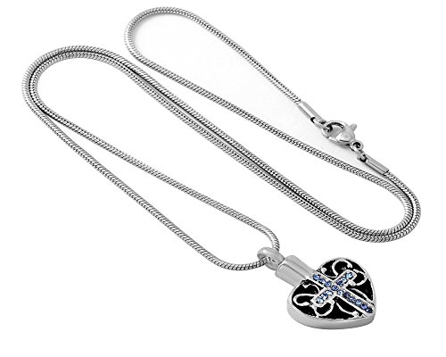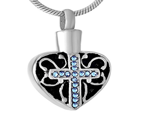 -. Title : Laceta's Keepsakes Blue Cross Heart Cremation Urn Jewelry Necklace Pendant Ashes Memorial Holder