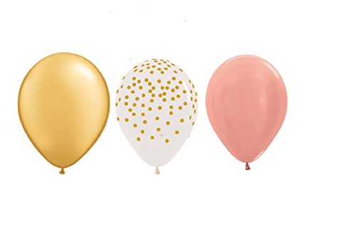 (MONKEYDOG PARTY)/Stationery Party Supplies/Party Supplies/DIRECT FROM USA/15 new 11 inch BALLOONS party ROSE GOLD , CLEAR with GOLD DOTS GOLD wedding FAVORS prom SHOWE...