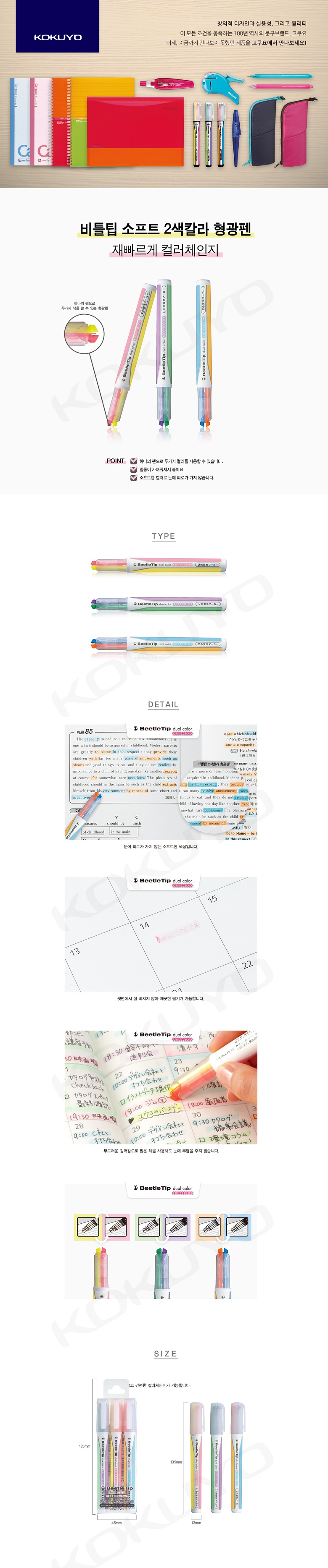 상품명 : 고쿠요 비틀팁 2색 소프트 형광펜 (노랑.핑크)