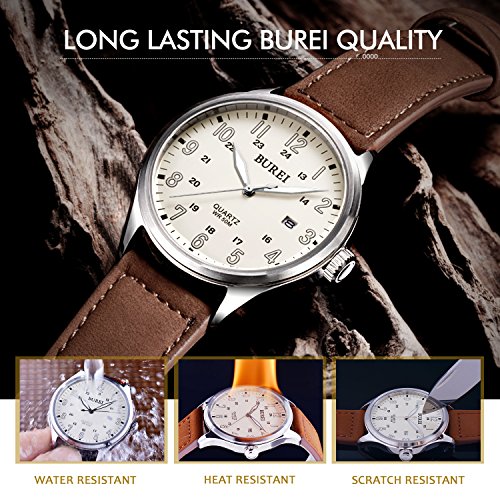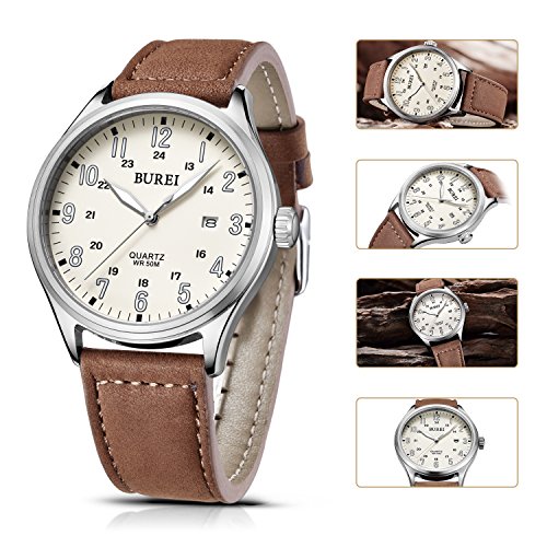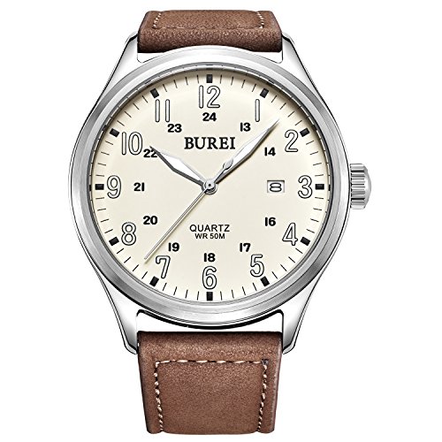 원본상품명: (バオショ)BUREI メンズ 腕時計 日付 革ベルトクォ?ツム?ブメント ホワイト文字盤 シンプル ファッションウォッチ