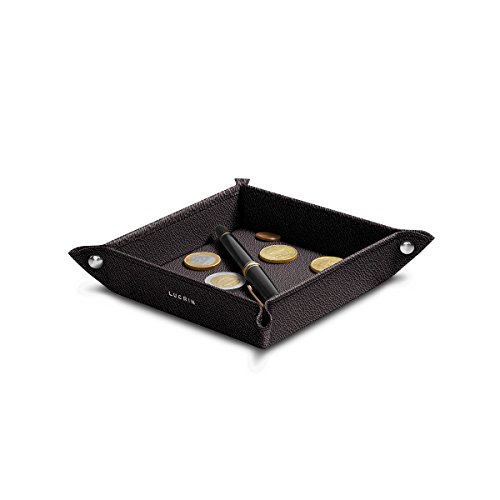 Lucrin - Small square catchall (6.3" x 6.3" x 1.2") - Dark Brown - Goat Leather