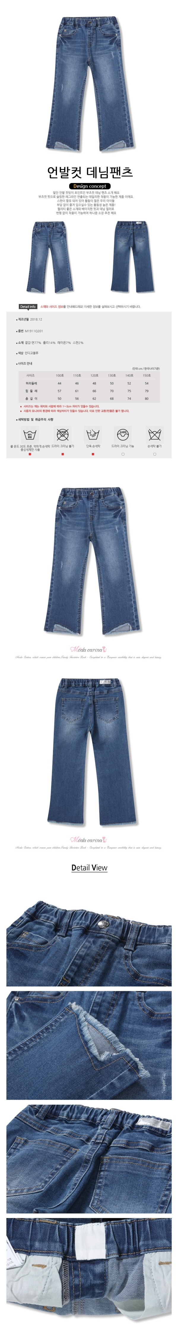밑단에 언발하며 디자인도 예쁘고 스판이 좋으며 핏도예쁜 팬츠입니다.