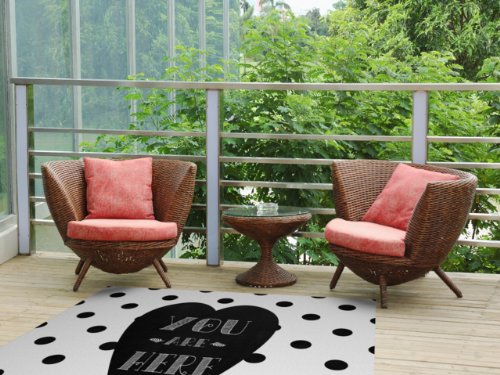 Kess InHouse Skye Zambrana "You are Here" Black White Indoor/Outdoor Floor Mat, 4 by 5-Feet