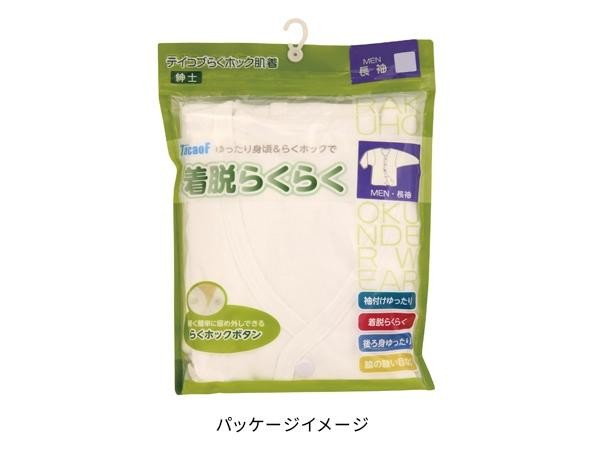 吸収性に優れ、肌触りのよい綿素材を用いた厚手の肌着です。取りはずしが楽に行えるホックを採用しています。 製造国:日本 素材・材質:綿100% 仕様:紳士用(長袖) ※サプライヤー直送品 ご注文後2~3営業日後の出荷となります【商品名】幸和製作所 テイコブ(TacaoF) らくホック肌着紳士用長袖 UN07 Sサイズ