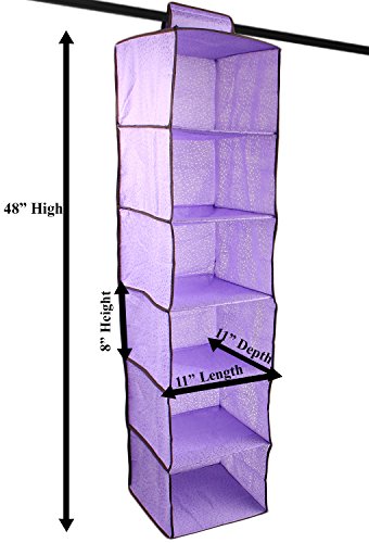 Hanging Closet Storage Organizer Foldable with 6 Cubby Shelves by bogo Brands (Purple)