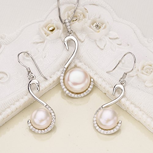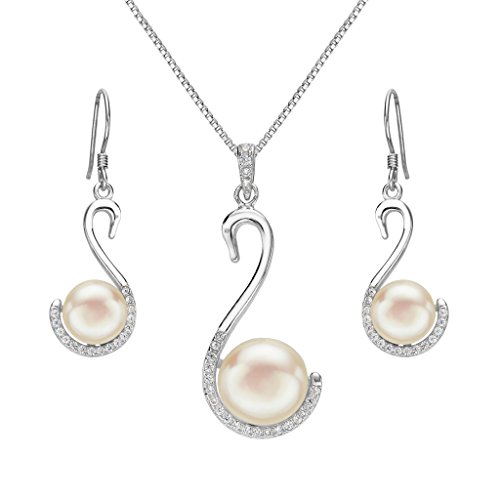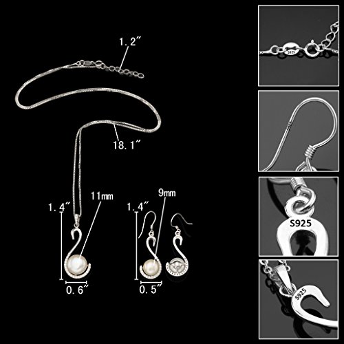 -. Title : EleQueen 925 Sterling Silver CZ Cream Freshwater Cultured Pearl Swan Bridal Necklace Hook Earrings Set Clear