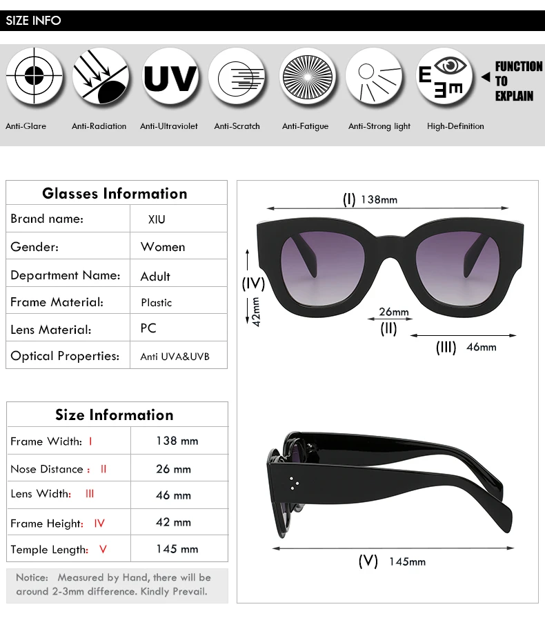 Lens Function:100% UV400 Protection Against Harmful UVA/UVB Rays
