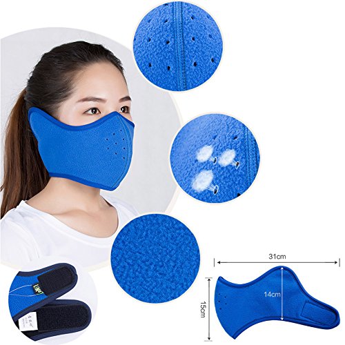 -. Feature : Keep warm and made in polar fleece / Breathable and Warm: Special Stitching design of Polar fleece & Mesh cloth with windproof Composite membrane and Holes for good breathable and keep warm / Soft and comfortable: Polar fleece material at all place touch skin?light weight and soft / READY FOR DUTY: Wear our half face mask on its own or with your helmet. Wear it as you ride,snowshoeing,ice-climbing,snowboard or ski. Wear it as you run, work out or play football. It's so lightweight and comfortable you'll forget you're wearing it. Like you, this skull cap is ready for duty.
