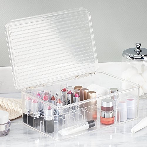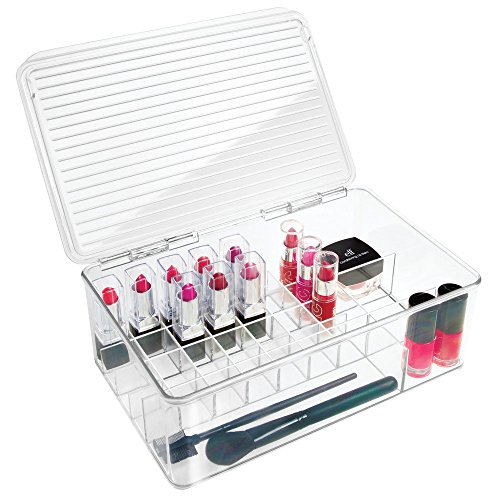 InterDesign Clarity Lipstick and Cosmetic Organizer with Lid for Vanity Cabinet to Hold Makeup, Beauty Products - Clear