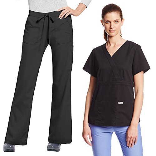 Grey's Anatomy Womens Junior Fit Scrub Set Medical Uniform Mock Wrap Top & Pants