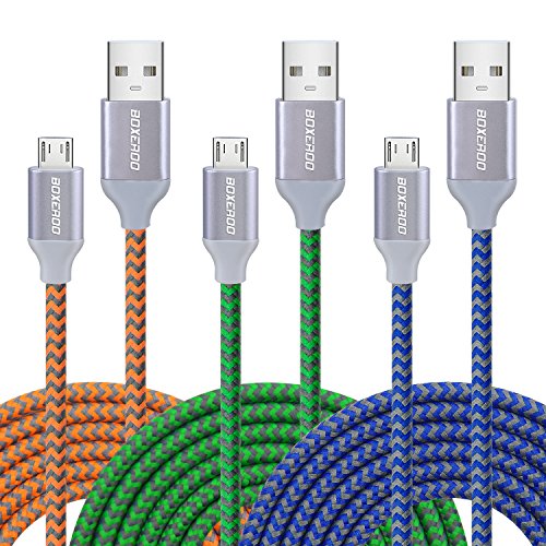 Boxeroo 10ft USB [3-Pack] Premium Micro USB Cable Colorful Braided Perfect Lengths Set High Speed Sync Quick Charging USB 2.0 A Male to Micro B Cable