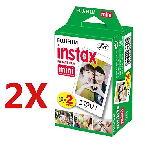 The Fujifilm instax mini 8 Instant Film Camera is a compact camera that supports the use of Fujifilm instax mini type film to produce instant credit card-sized prints. In regard to imaging, the instax mini 8 features a Fujinon 60mm lens that is capable of focusing as close as 2' away. A built-in flash provides additional illumination for exposures when working in low-light conditions and automatic exposure control helps to ensure consistently accurate exposures in a variety of lighting conditions. An optical viewfinder with integrated target spot is available for image composition and an exposure counter is incorporated into the design to visually display the number of exposures remaining in the film pack. For extra convenience, due to their widespread availability, the instax mini utilizes two AA batteries as its power source.This twin pack of Fujifilm instax mini Instant Color Film includes 20 exposures of sharp, credit card-sized, daylight-balanced ISO 800 film made for use in instax mini series cameras. Recognized for its excellent color reproduction, the film has a glossy finish and is a suitable choice for general use, portraiture, or even with electronic flash. Due to its "mini" size, it is easier to carry, file, and store when compared to larger, more traditional film formats.Thanks to its high-speed rating, instax mini Film will produce sharp images even in low light scenarios. It maintains its stability over the years making it a good choice for archival storageFeature