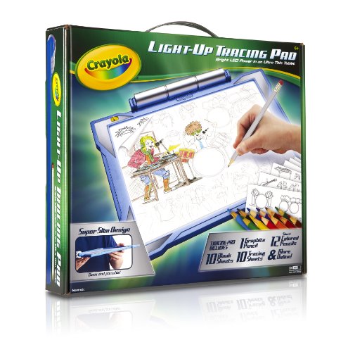 Crayola Light Up Tracing Pad Including: Coloring Board, Graphite Pencil, 12 Short Colored Pencils, 10 Tracing Sheets, and 10 Blank Sheets