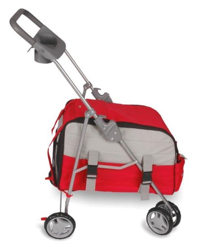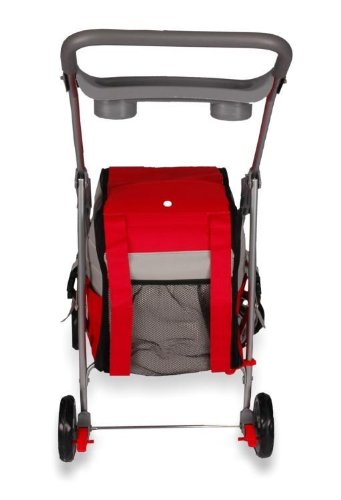The carrier cage has removable, adjustable shoulder straps which allow the cage to be easily carried and also double as the securing device to the pet stroller and can also be used with a seatbelt through the rear straps to help secure the carrier in a car to act as a safe car seat for your pet. The carrier cage then fits onto the non-rust steel pet stroller unit which includes 2 drink holders and a tray, a braking system on the back wheels for parking and the pet strollers wheel unit folds down for easy storage and transport when it is not needed. These soft sided folding pet strollers are loaded with quality features to keep you and your dog or cat comfortable in most any situation.