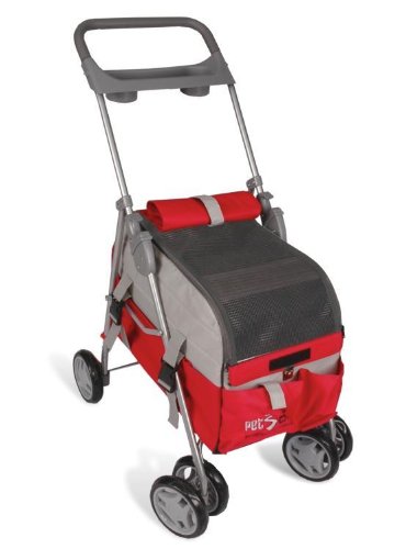 These include a tubular steel frame, top and side zippered doors for easy access for you or your pet, accessory pockets on each side for storage, water resistant canvas that is washable, and drink holders for those extra long walks. The Pet Trex Stroller only takes a few seconds to assemble and it folds down for easy travel.