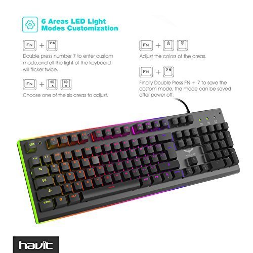 -. Title : HAVIT RGB Backlit Wired Membrane Gaming Keyboard, Mechanical-Similar Typing/Gaming Experience