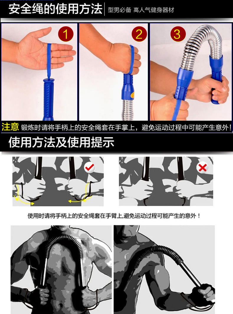 u0026nbsp;3.使用时,将臂力器手柄上的安全带套在手腕上。