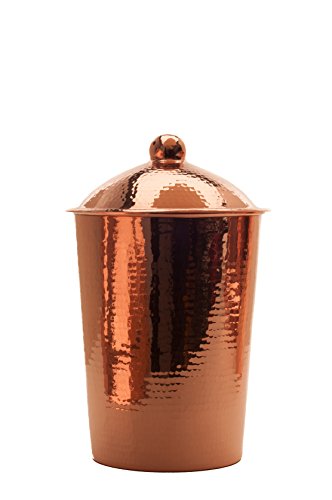 Sertodo Copper, Hand Hammered Pure Copper, Kumran Kitchen Counter Storage Canister with Lid, Medium (4-quarts, 11"H x 6.5"W)