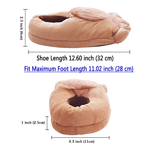 Binding : Apparel Product Description These slippers are covered with light flesh colored polyester and brown faux fur on the top to look like Halfling feet. On the front of the slippers is stitching to give the appearance of toes with each toe having a toenail and hair printed on them. The slippers are also stuffed with soft foam on the top and sides and stiffer foam on the bottom to allow for comfortable wearing. The bottoms of the slippers are black with black rubber grips to allow for better traction when you walk in them. Features: - 100% Brand New with High Quality. - Creative, Peculiar,Fashion,Personality - Color: Furry Slippers,Stump Slippers - Package includes:A pair of slippers - Plush slippers turn your footsies into furry adventure feet - These hairy feet are adorable,not gross - With the anti-skid bottom so you can feel safe wearing them on wood or tile floors - Adorable gift to friend,family,during Christmas,New Year. Cotton Slippers Size:Unit:cm (1cm=0.39inch) Standard:Shoe Length 12.60 inch (32 cm) Standard:Fit Maximum Foot Length 11.02 inch (28 cm) Plus:Shoe Length 13.78 inch (35 cm) Plus:Fit Maximum Foot Length 12.20 inch (31 cm) Purchase Notes: 1)Due to light or monitor and other reasons,in kind there may be a little color difference,please understand! 2)Due to different measurement methods,there will be about 0-3CM error,please prevail in kind! 3)If you are satisfied with our services and products,we would like you to leave us with positive feedback and 5 star ratings.Your every feedback and star is of great significance to us! 4)If you are not satisfied with our products,please contact us before you leave negative feedback.We promise to reply within 24 hours and find the best way to solve your problem!