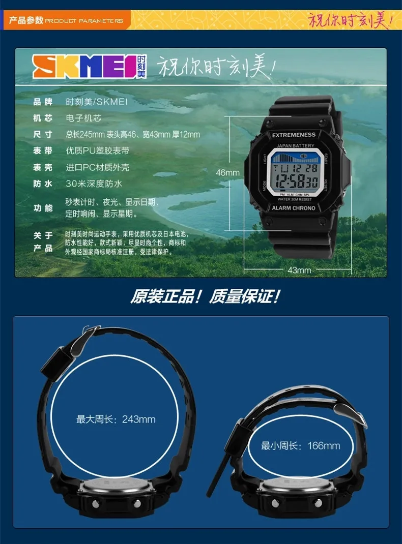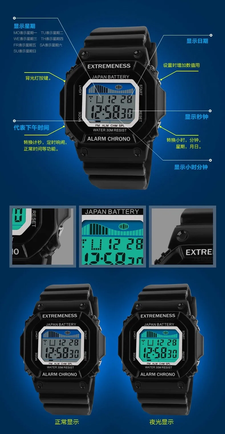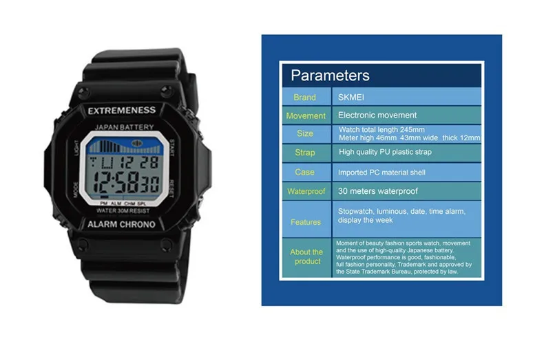 Feature:Alarm,Back Light,Water Resistant,Repeater,Shock Resistant,Stop Watch,Complete Calendar,LED display,Diver