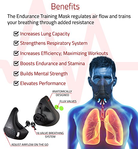 If you want to Increase your Strength, Endurance, and Boost your Performance, your Solution is Here... Through TEC Innovation and Rigorous Testing, the Endurance Training Mask simulates high altitude training which takes your workout to the Next Level. Athletes, runners, cyclists, and gym enthusiasts have incorporated high altitude training in their regimen for decades because it increases lung capacity which boosts strength and endurance. Don’t worry! TEC Endurance Training Mask comes with 16 easy-to-adjust breathing levels to accommodate all performance levels ? simulating heights of 4,000 to 18,000 feet. Comfortable, Ultra-Silent and Lightweight! You don’t have to worry about selecting the right size. It’s anatomic design is intended to fit all men and women between 120lbs ? 230lbs. Regardless of how much you sweat, the non-slip straps will keep your training mask secured throughout your workout. Also, it’s ultra-silent feature minimizes the noise from breathing. Plus, it’s extremely lightweight and comes with a workout case so you can take it anywhere you want without damaging it. 100% Satisfaction Guarantee: Our Endurance Training Mask is backed by our manufacturer 30-day money back guarantee. So, what are you waiting for? Click on the ‘ADD TO CART’ button and get your Endurance Training Mask shipped right away. 0 |