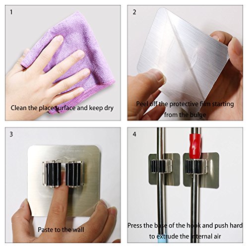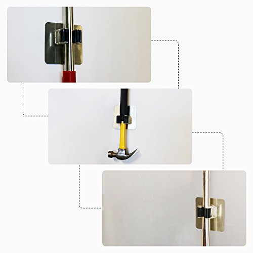 The Feature: Waterproof Adhesive Mop Holder: waterproof, oil proof, moisture proof and heat resistance. Seamless Mop broom Holder:No adhesive residue, leaving no holes,no tools required. without damaging the wall or ceiling.