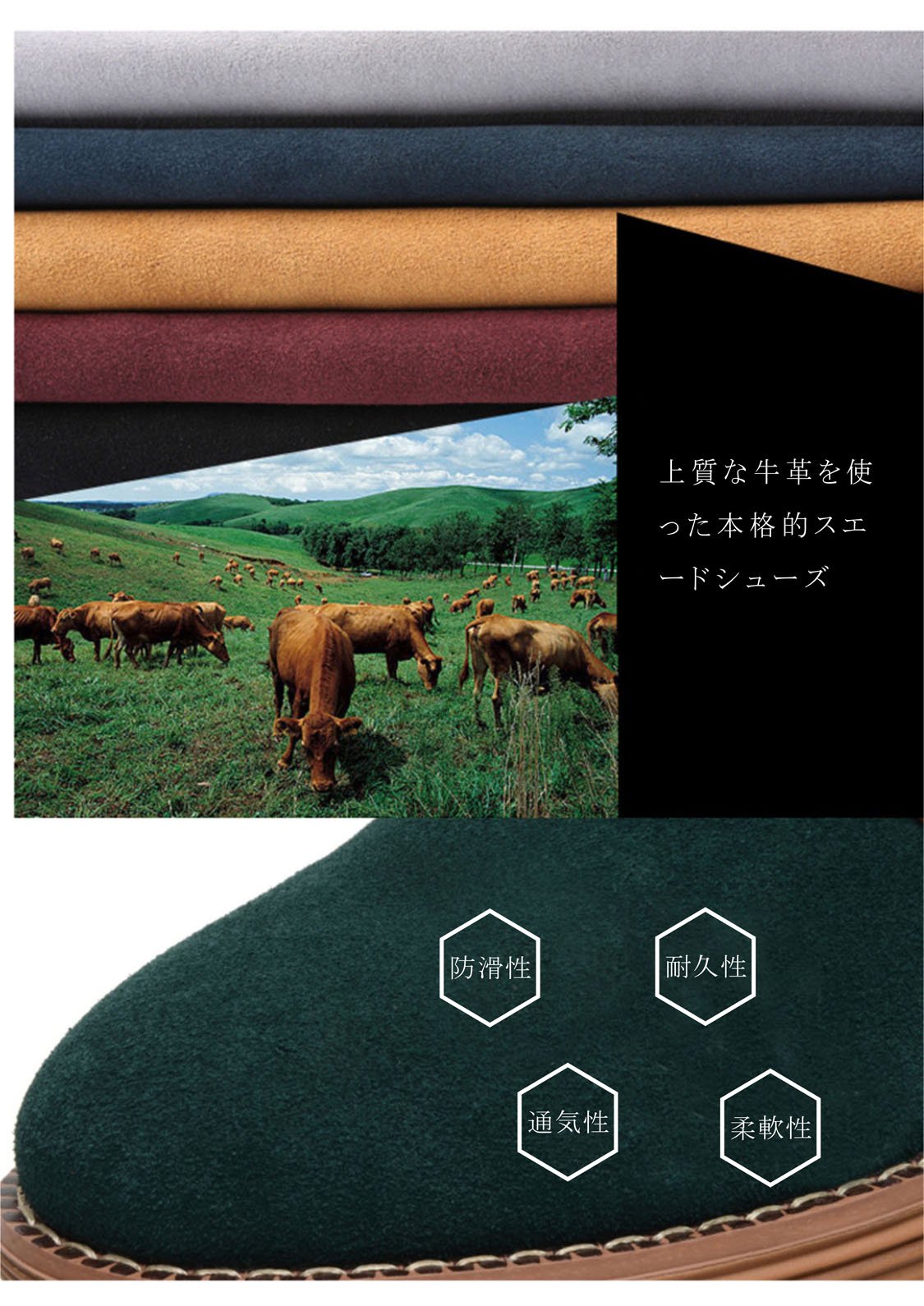 Authentic suede shoes using fine cowhide