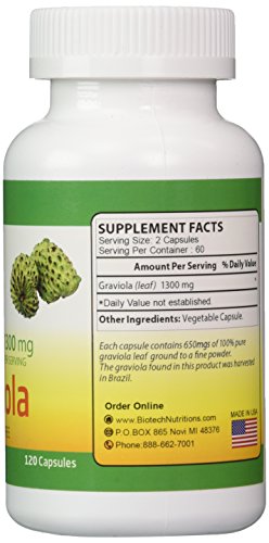 -. Title : Biotech Nutritions 100% Pure Graviola 1300mg Per Servings 120 Capsules Per Bottle (Annona muricata)