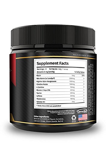 MOST POWERFUL PRE WORKOUT POWDER - With a whopping 1500mg of total citrulline along with beta alanine, you'll feel a huge energy boost within minutes and be able to enjoy the best workouts of your life, because you'll experience immediate drive, focus, and strength. You'll lift more weight, work harder, and increase your intensity, so that you get maximum results from your workout from the very first use.