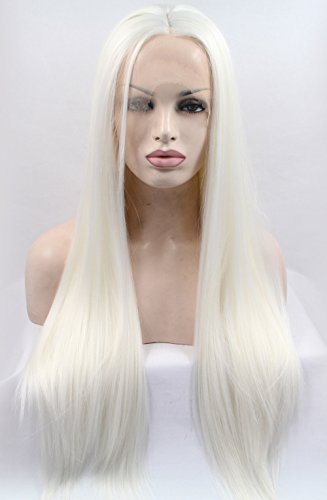 K'ryssma Synthetic Lace Front Blonde Wigs Half Hand Tied for White Women Heat Resistant Fiber Hair Silk Straight Wig 22 Inches
