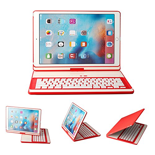 -. Feature : 1. Compatible for Apple New ipad 2017 and ipad 5 & ipad Air. Will not fit iPad Pro 9.7 and other iPad.Red design with a Hard PC polycarbonate exterior body that is water resistant, dirt, and shockproof. / 2. New ipad 360 Degree Rotation protective case with a wireless Bluetooth keyboard and Swivel Stand,let your iPad Pro turned laptop, easy to work. / 3. The keyboard has good key responsiveness and and the keys typed have instantaneous appearance on the screen. / 4.High quality hard clamshell case with matte finish. Ultra-low profile Bluetooth keyboard, with spacious, optimized key design for comfortable typing experience. / 5. 360 degrees rotatable swivel stand: Versatile 360 degrees swivel stand offers greater convenience when operating the ipad.