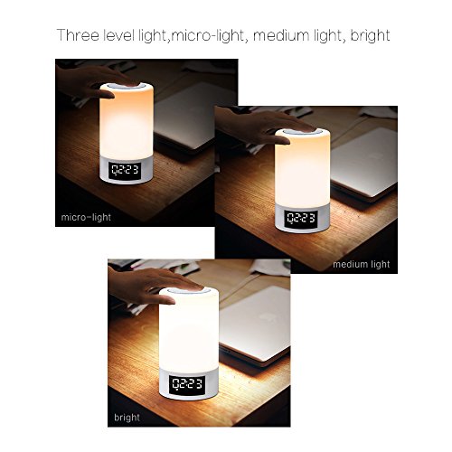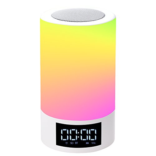 Areskey LED Bluetooth Speaker Lamp - Night Light FM Radio Alarm Clock LED RGB Color Changing Touch Sensitive Dimmable Table Lamp (White M6)