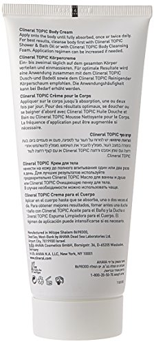 -. Binding : Health and Beauty -. Brand : AHAVA -. EAN : 0697045003877 -. Feature : AHAVA's naturally rejuvenating skincare products are formulated with the finest skin-friendly ingredients. / AHAVA products are: paraben free; SLS/SLES free; allergy tested; approved for sensitive skin. / Products are not tested on animals; and produced without petroleum, harsh synthetic ingredients, or GMOs. / Based on human genome research and biotechnology, AHAVA develops products focused on relieving the severity of various joint diseases. To improve the understanding of the efficacy of minerals in improving skin texture and appearance. -. IsAdultProduct : 0 -. Label : AHAVA -. Manufacturer : AHAVA -. Model : 81001055 -. MPN : 81001055 -. PackageQuantity : 1 -. PartNumber : 81001055 -. ProductGroup : Prestige Beauty -. ProductTypeName : LUXURY_BEAUTY -. Publisher : AHAVA -. ReleaseDate : 2016-08-31 -. Studio : AHAVA -. Title : AHAVA Clineral Topic Body Cream, 6.8 fl. oz -. UPC : 697045003877