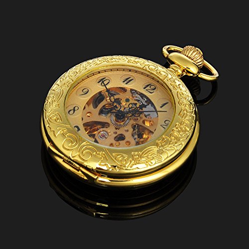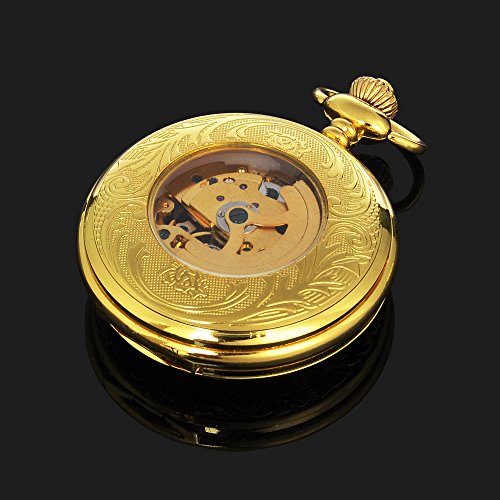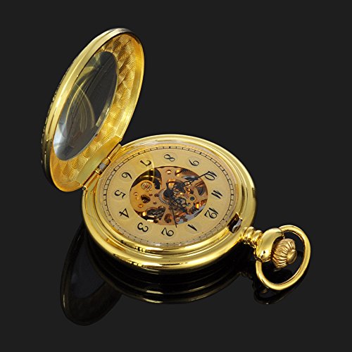 -. Title : Magnifier Case Gold Color Noctilucent Hands Mens Automatic Pocket Watch
