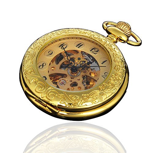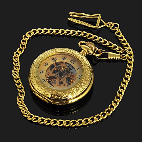-. Feature : Unique skeleton dial with black arabic numerals and hands / Magnifier glass front case for old man / Automatic movement ( self winding ) / 12-hour Dial / Includes 31cm chain