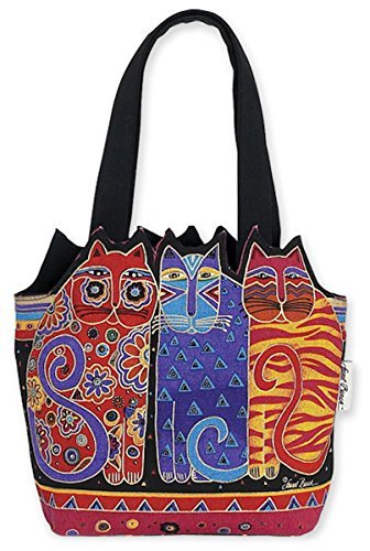 -. Title : Laurel Burch Medium Tote Zipper Top, 12 by 3-1/2 by 8-1/2-Inch, Tres Gatos, Red/Orange/Blue