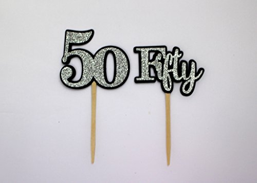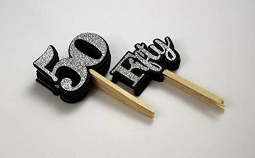 All About Details Black & Silver Fifty Cupcake Toppers, Set of 12