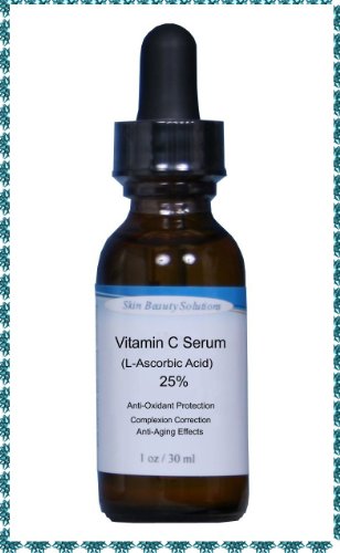-. Feature : Anti-Oxidant Skin Face Serum - Organic (L-Ascorbic Acid) plus Vegan Hyaluronic Acid -Professional Strength for Anti-Aging, Sun damage, Sun Spots & Even Skin Tone. Clear Serum. Leaves Skin Radiant and More Youthful By Neutralizing Free Radicals. Made Fresh to Order. / Refresh your skin with Skin Beauty Solutions Pure Organic Vitamin C Serum. The acidity of L-Ascorbic Acid will exfoliate and promote skin renewal, help restore elasticity to aging skin, promote collagen synthesis, protect against UV Damage, reduce redness, promote wound healing, suppress melanin synthesis, and more. / Problem Type/ Purpose: Anti-Aging, Hyperpigmentation, Antioxidant Rich. Prevents Acne, Sun Damage, Sun Spots, & Age Spots / It is highly recommended that everyone apply Vitamin C onto the face daily since this protects against UV induced cell damage. It is this sun damage that not only causes premature aging but also skin cancers. However Vitamin C has other properties including being one of the few ingredients that has a science base to show that it reverses signs of aging to the skin. / Skin Types: Combination, Dry Skin, Normal Skin, Oily Skin, Acne Prone Skin, Mature Skin.