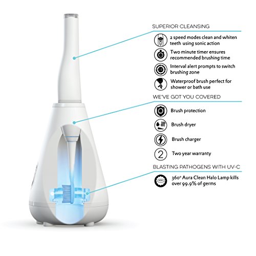 CLEANING MODE - The clever self-cleaning design of the Aura Clean Base Station cleans and protects your electric toothbrush from environmental pollutants and germs. Cleaning takes place within the Base Station core, with the advanced Aura Clean Halo, a circular UV lamp featuring a 360 degree light source that zaps germs in an instant. The lamp's UV-C rays destroy the DNA of pathogens keeping your brush fresh and ready to give you a truly deep clean.