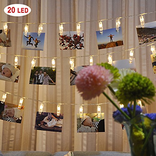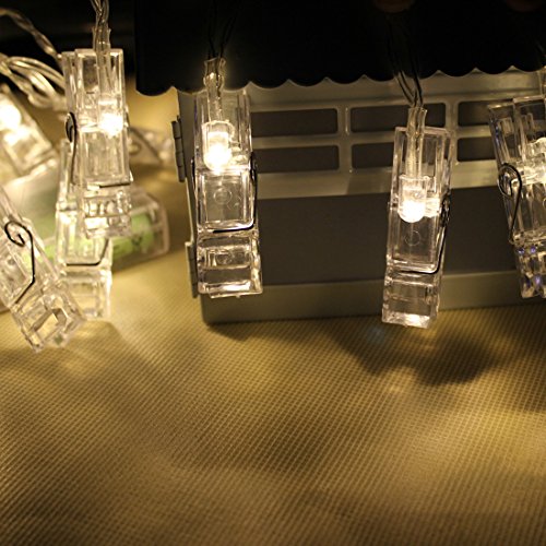 - 20 LED Photo Clips - Clear, transparent photo clips are designed like traditional clothes pins to securely hold photos without damaging them. Each clip paired with a white light LED to softly illuminate photo, display card, artwork and more. Perfect for decoration indoor or outdoor