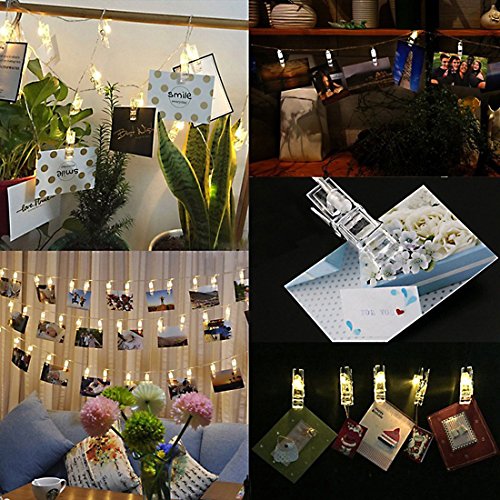- Romantic & Warm Atmosphere - Each LED bulb equipped with a transparent clip which can nip photo or other small Items creating excellent illumination and a warm atmosphere, spreading light and cheer across a wide area. It is indispensable for festival decoration.