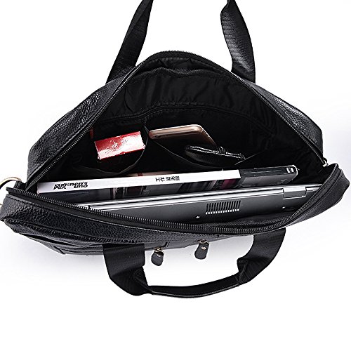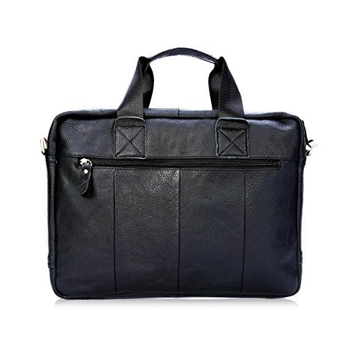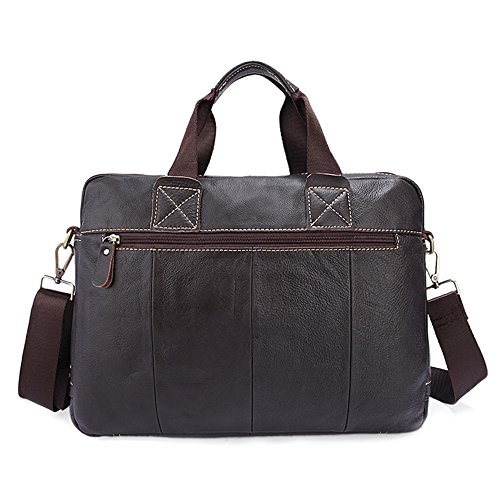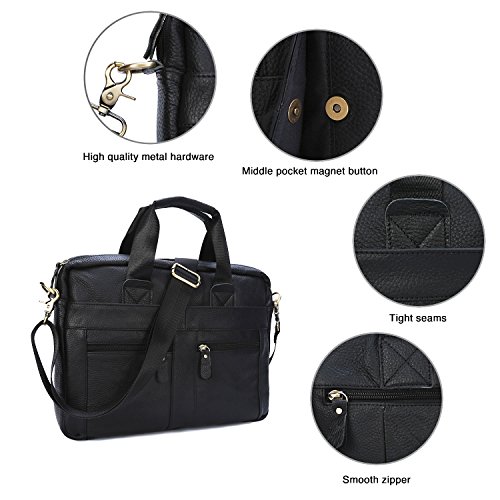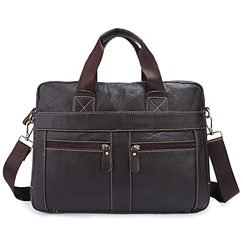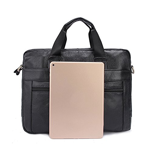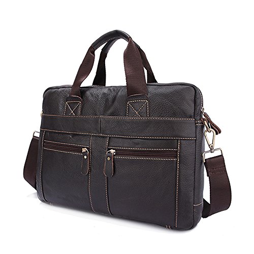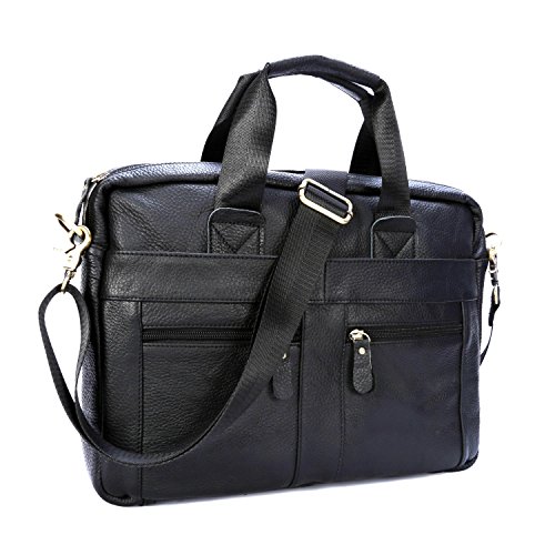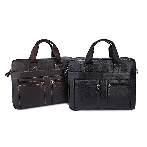 -. Feature : Excellent Quality Material. Genold business laptop briefcases are made from genuine cowhide grain soft leather with solid brass mental hardware and smooth zippers Poly-cotton Lining / ApproP.R.Iate Size for Casual and Work. Dimension: 14.2 x 2.8 x 11.4 inches (26 x 7 x 29cm). Weight: 2.2lb (1000g). Not too large or small, you can organize all the essentials and quickly grab them when they are needed. / Plenty of Room. External: 2* front zipper pockets, 1* middle pocket closed with magnetic button, 1* back zipper pocket. Internal main compartment within 2* small wall pockets, 1*zipper pocket and a compartment for 14 inch laptop. Perfect carry your tablet, iPad, notebooks, magazines, pens, cellphone, wallet, keys and other items, you can organize all the essentials and quickly grab them when they are needed. / Convertible Ways to Carry. High density durable nylon shoulder strap detachable and adjustable to 51 inch ensure you carry it as a crossbody bag or shoulder bag. Top handle wrapped with the genuine cowhide leather making you feel more comfortable to take as a handbag briefcase. / Business briefcase withe professional and trendy appearance, perfect for men as a commuted handbag suitable for office workers group. Best birthday gift and Christmas Festival present for your lover.